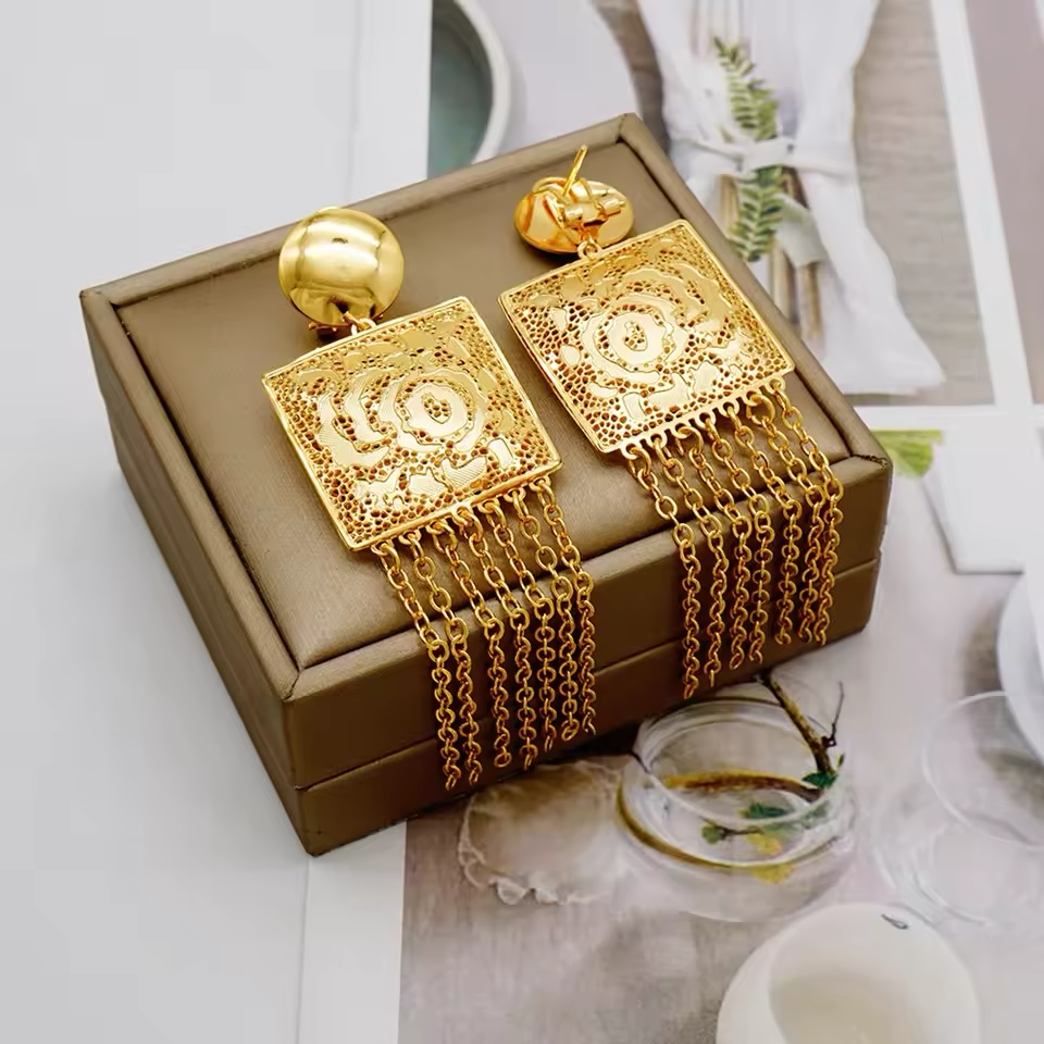 Gold Plated Long Tassel Jewelry Set for Women Dubai Banquet Necklace Jewelry Accessories