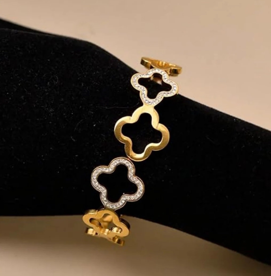 22k gold plated titanium steel cuff bracelet with 1 year+ color guarantee.