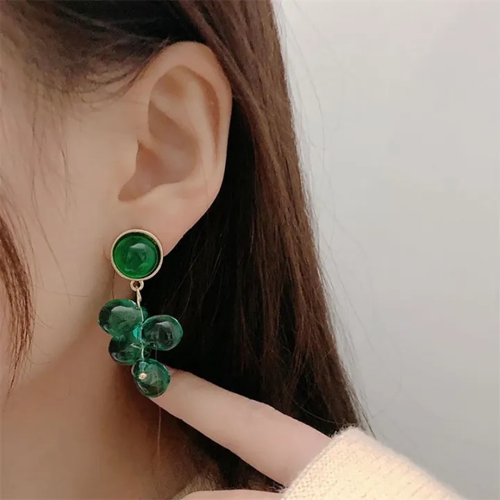 women’s dark green purple grape drop earrings jewelry